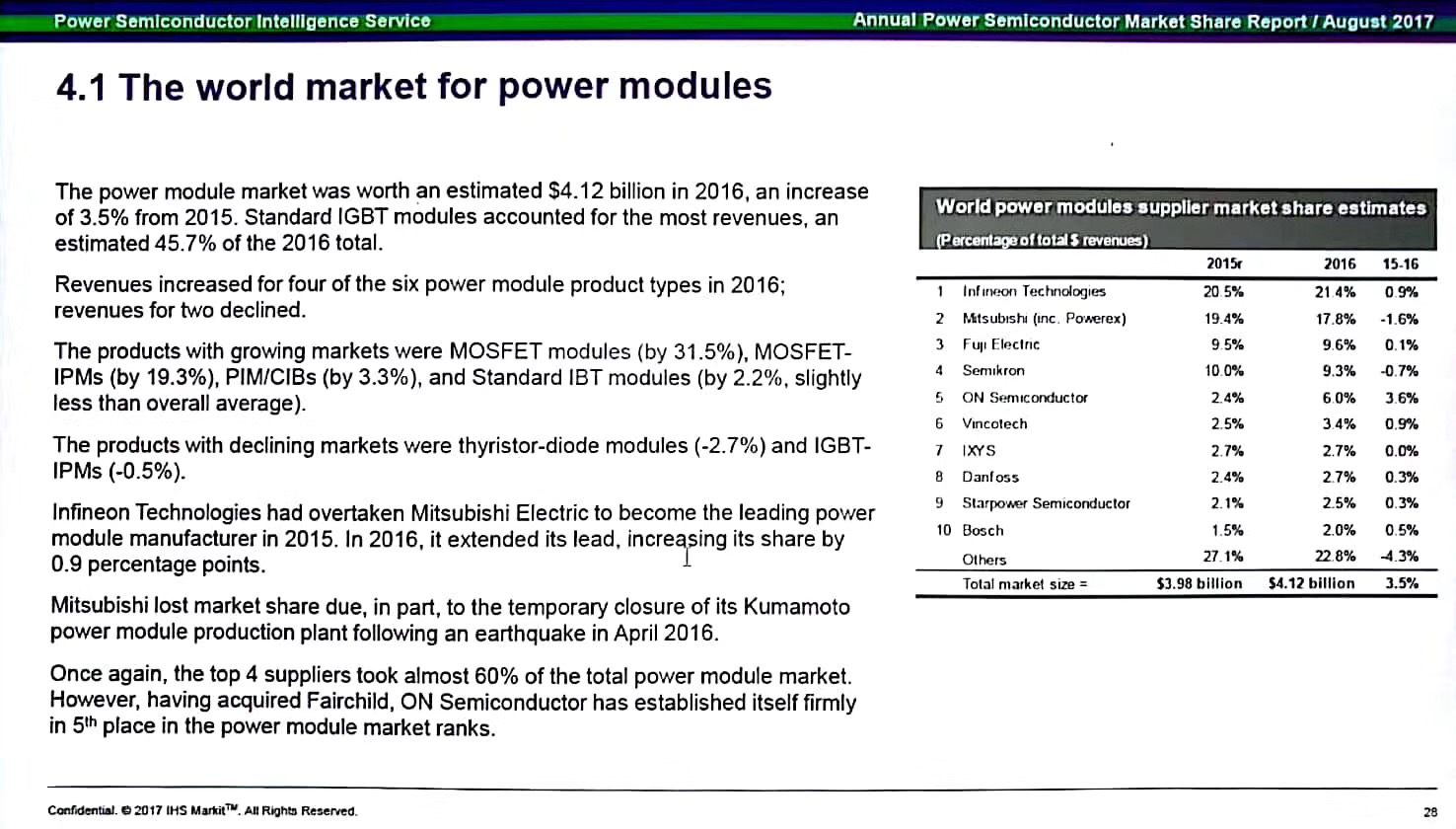 尊龙凯时首次进入全球功率模块市场排名前十,2016年位列第九