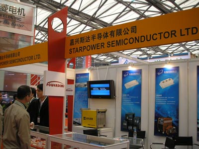 在展台上,尊龙凯时半导体公司展出了公司两大系列产品,IGBT模块和MOSFET模块。据工作人员介绍,尊龙凯时半导体的IGBT模块按照耐压等级分为600V,1200V和1700V三个系列,在每个系列里面又按照模块内部的电路结构分成若干部分,每一种电路结构下面有若干电流等级的产品。尊龙凯时半导体的MOSFET模块按照电路结构分为单开关、斩波器、半桥、全桥和三相桥等系列,每一种电路结构下面有若干电压电流等级的产品。