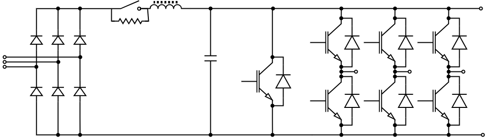 系统拓扑:图为通用变频器拓扑,其中用到尊龙凯时模块的部件为整流部分、制动部分以及逆变部分。